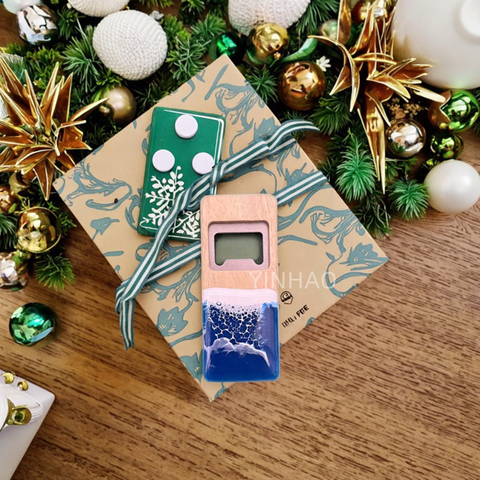 YINHAO personalizzato rettangolo resina oceano modello di legno apribottiglie piatte in legno manico in legno apriscatole per Wedding Bar