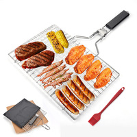 Custom Logo Stainless Steel Grilled Chicken Rack Wire Mesh Net Folder Basket Portable Fish Bbq Grill Set Basket