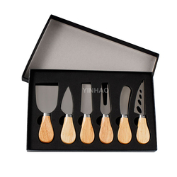 Custom Logo 6 Stuks Kaasmes Set Rvs Eiken Houten Handvat Kaasmes Set Met Geschenkdoos